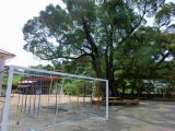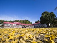 国道3号線沿い,赤い屋根と木造校舎が目印の歴史ある小学校です。