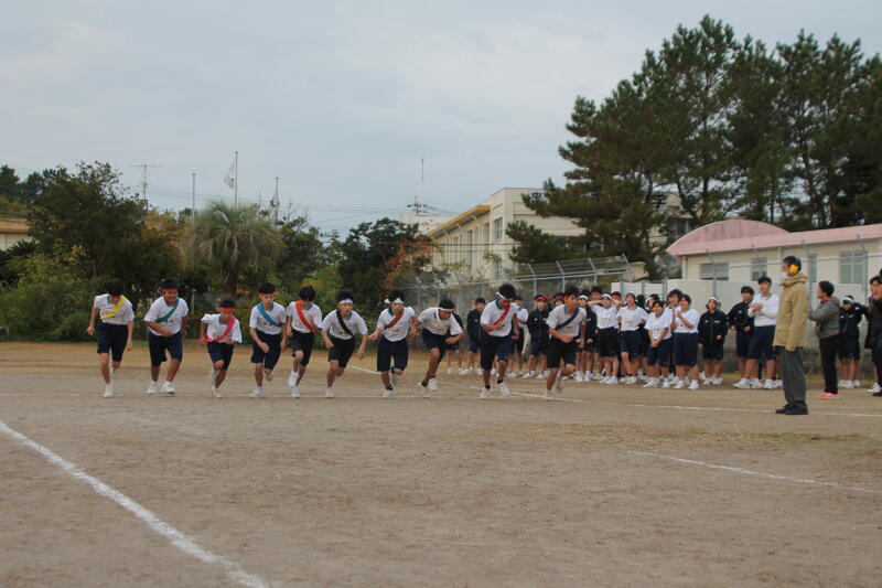 12月13日に土曜授業を使って校内駅伝大会を実施しました。体育の授業で練習を重ね,学年毎にチーム編成をして,クラス対抗で行いました。仲間との絆を深めながら,それぞれが精一杯走り抜きタスキを繋いでいく姿は感動的でした。また,たくさんの保護者も応援に来てくださって,大きな声援もいただきました。苦しさを自分の力で乗り越えた今回の体験を今後の生活に生かしてほしいと思います。
