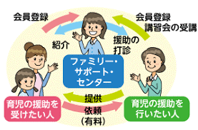 ファミリー・サポート・センターは、子育てを手伝ってほしい人「おねがい会員」と手伝ってあげたい人「あずかり会員」
