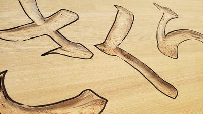 新木小学校には多くの八重桜があります。毎年きれいに咲き誇りますが、その桜並木に「さくらのこみち」という看板があります。2000年に作られたその看板は、古くなり壊れてしまったので、新しい看板を2週間前から制作しています。先生方が交代で、タイトルの「書き」や「掘り」や「削り」の作業をしています。完成まであと少しです!