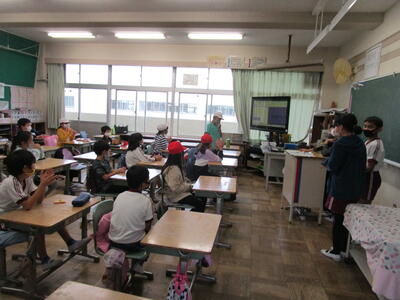 今日は、今年度初めての「あらキッズタイム」が昼休みに行われました。初めてということもあり、自分の自己紹介を中心に活動を行いました。6年生が責任を持って、1年生を活動場所に連れていってくれている姿を見て、頼もしく感じました。各グループで6年生がリーダーとなり、進めることができました。今日はいつもよりも短めの活動時間だったので、第2回目の「あらキッズタイム」は、たくさんの遊びを通じて、異学年の交流をさらに深めてほしいと思います。