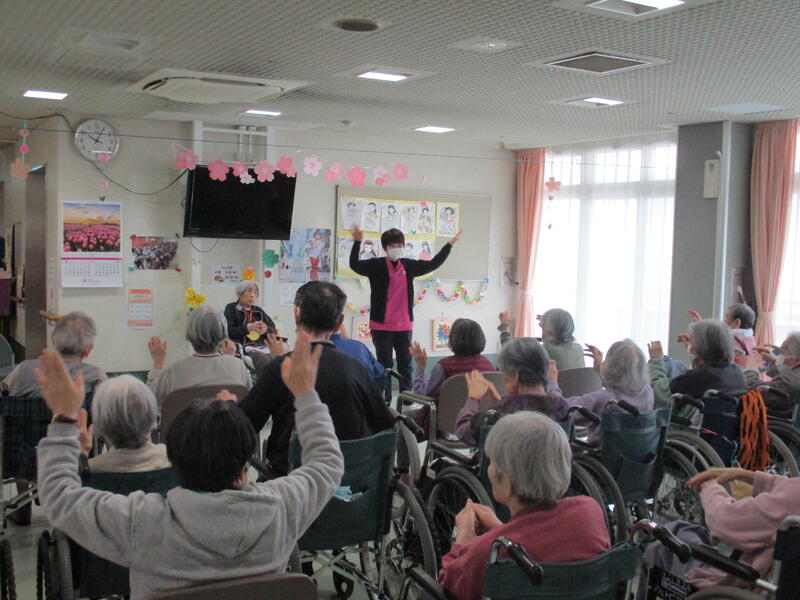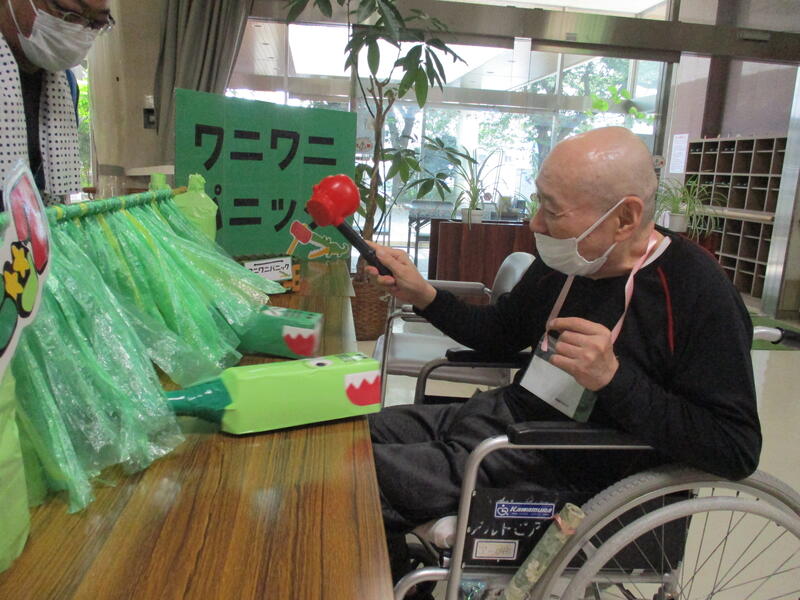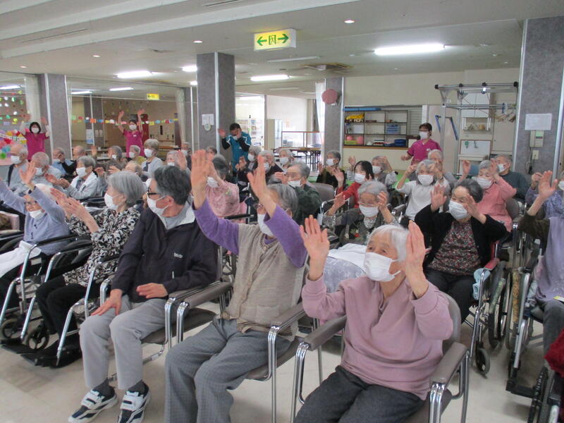 施設生活の中での気分転換や人的交流などの目的でレクリエーション活動を様々な形で提供しています。これはリハビリテーション効果を高めるためにも行っています。