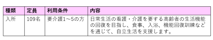 1.サービスの種類およびご利用定員
