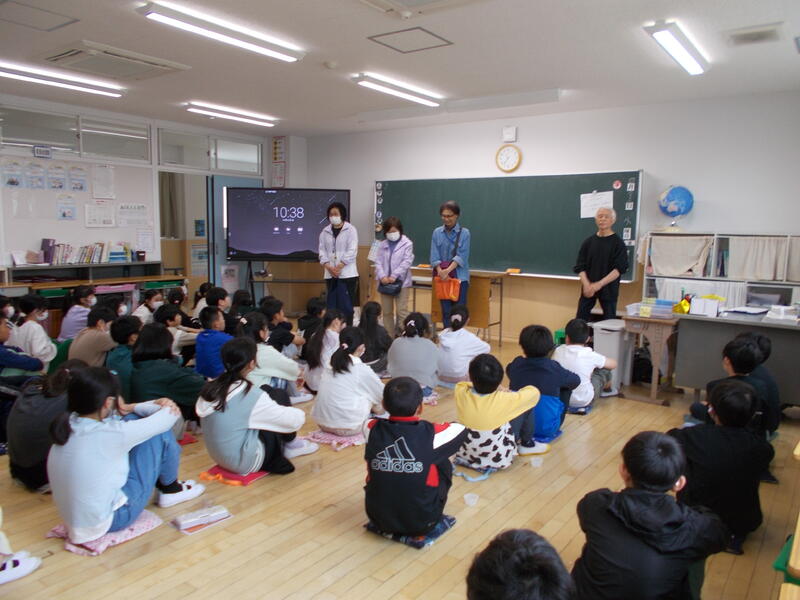 12月19日(火)にピーススタッフ長生の3名の方々をお招きして出前授業を行いました。1・2年生と4・5年生を対象に行いました。テーマは「戦争により 大きく変わった 私たちのくらし」で、戦時中の体験をお話していただきました。また、空襲を受けた市町村の様子を資料として見せてくれました。子どもたちは、戦時中の話を真剣な眼差しで聞き、戦争は、二度と起こしてはいけないということや平和な世の中を大切にしてくことを学びました。