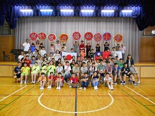 6月24日、25日、26日。台湾台北市の福林小学校の児童5,6年生21名が長南小学校に海外交流として来日しました。初日24日(月)は、児童会が企画した歓迎会を全校児童で行い、お互いの学校紹介や校歌の紹介、また「きらきら星」を中国語で一緒に歌ったりしました。その後、6年生と「お手玉合戦」を楽しみ、両国入り混じって体を使ってコミュニケーションを深めました。
