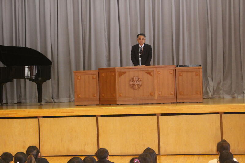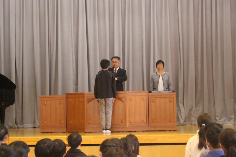 修了式では、佐藤校長先生から代表児童へ一年間の修了の証である修了証書を渡しました。また、佐藤校長先生から講話をいただきました。