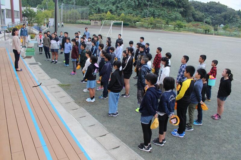 26日(水)に開催する一・三地区球技大会を前に全児童でサッカー部、ミニバス部の選手を応援しました。