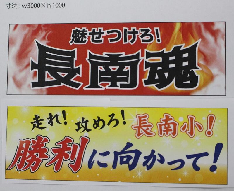 サッカー・ミニバス・体操などの大会で長南小児童の皆さんを応援するために、横断幕を作成しました。これからの大会でぜひ、披露したいと思います。また、PTAバレーの際にも使用できるかと思います。