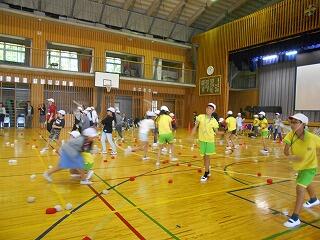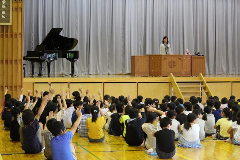 6月24日、25日、26日。台湾台北市の福林小学校の児童5,6年生21名が長南小学校に海外交流として来日しました。初日24日(月)は、児童会が企画した歓迎会を全校児童で行い、お互いの学校紹介や校歌の紹介、また「きらきら星」を中国語で一緒に歌ったりしました。その後、6年生と「お手玉合戦」を楽しみ、両国入り混じって体を使ってコミュニケーションを深めました。