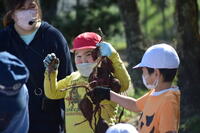 二枚貝や不思議な形をした生物の化石を見つけると、大きな歓声を上がりました。