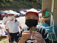 10月27日(木)に6年理科「土地のつくりと変化」の学習で、化石探しをしました。学区内にある地層から持ってきた岩石を観察し、金づちやシャベルを使い探しました。