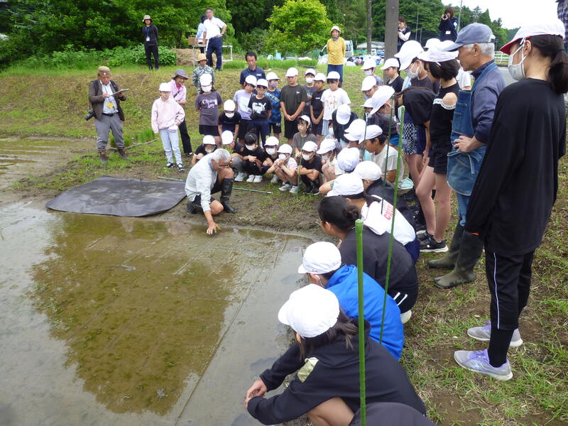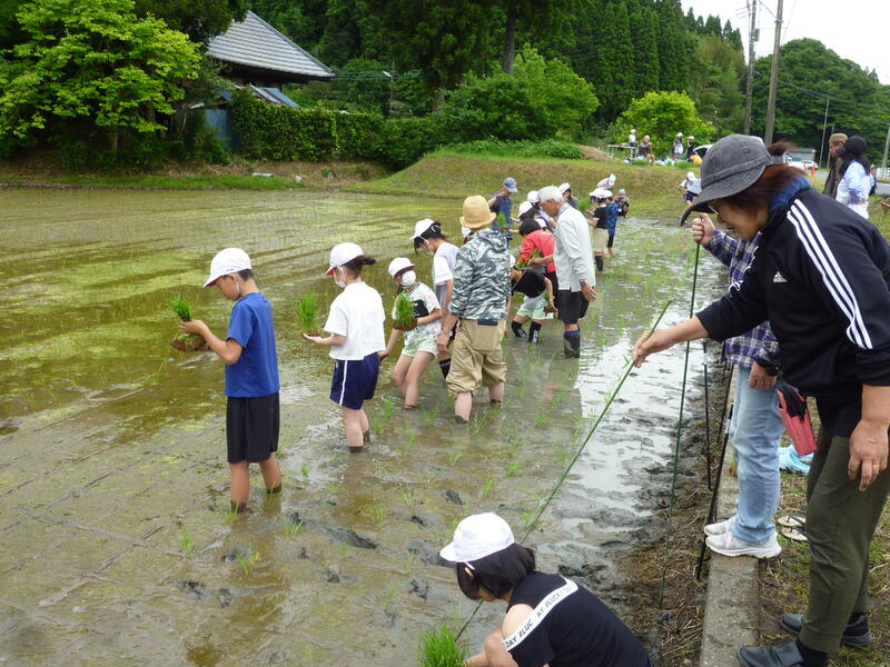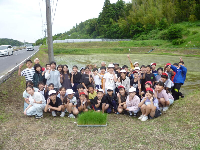 5月27日(火)に古代米の田植えを行いました。講師である古代米組合の古市幸雄さんを中心に、地域のボランティアの方々にもサポートしていただきながら苗を植えていきました。子どもたちは、慣れない泥の感触に最初は戸惑いながらも、楽しんで田植えをしていました。最後には「田んぼから出たくない」「まだやりたかった!」という声も上がっていました。今後は秋の稲刈りに向け、田んぼと学校のバケツ稲の両方をお世話していく予定です。