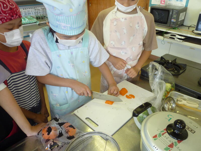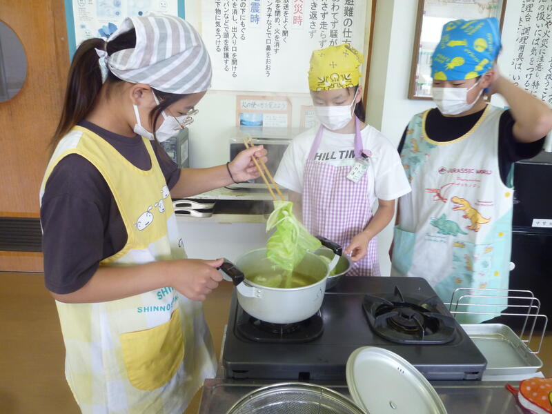 5年生の家庭科「クッキング はじめの一歩」の学習で調理実習を行いました。にんじん、キャベツ、ブロッコリーを使った温野菜サラダを作り、切る・ゆでるといった調理の練習をしました。ドレッシングも手作りし、野菜の調理方法や調理器具の扱い方を楽しみながら学ぶことができました。「大変だったけど楽しかった」「家でもやってみたい」という声も聞こえました。この学びを、今月25・26日に行われる宿泊校外学習にも生かしていきます。