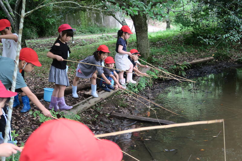 6月13日(金)に「いすみ環境と文化のさとセンター」へ行ってきました。自然観察をしたり、ザリガニ釣りをしたりしました。子どもたちは、熱心にガイドティーチャーの話を聞き、鳥のさえずりや草木の美しさに感動していました。スルメを付けた竿でザリガニが釣れた時には、みんな大喜びでした。