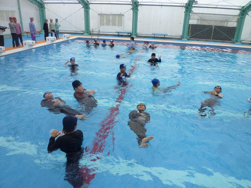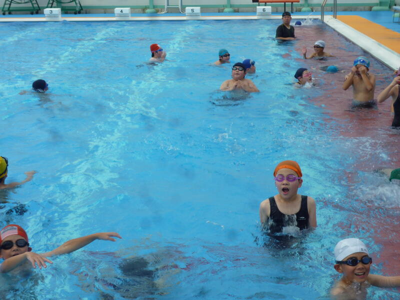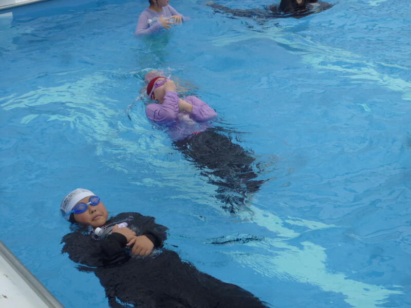 全員で水中を歩いたり、宝探しゲームをしたりしました。