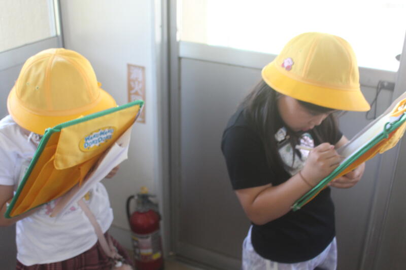 万一、海や池などに落ちてしまった場合は「あわてず 浮いて 待て」を合言葉にペットボトルや近くにある浮くものを使って、慌てず浮きながら救助を待つということを学習しました。