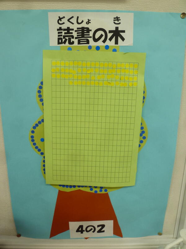 どの学級も意欲的に読書に取り組み、「読書の木」にたくさんの花を咲かせています。