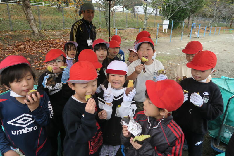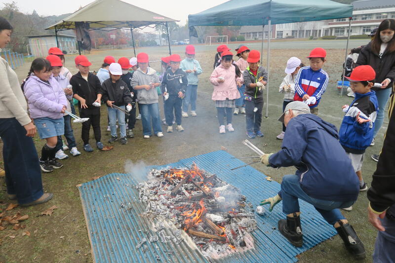 焼き芋体験をしました 投稿日時 : 12/10 長南小学校管理者 12月3日(水)に1年生が焼き芋体験をしました。 11月に収穫したサツマイモと、学校ボランティアの川野さんが持ってきてくれたサツマイモを焼き芋にしました。ボランティアの方々の協力のもと、火をつけるところから、落ち葉を入れて火が大きくなる様子を間近で見ることができました。その後、ホクホクになった焼き芋をみんなでいただきました。熱々で、やわらかくて、とても甘い焼き芋になり、子どもたちは「おいしい、おいしい。」と喜んで食べていました。大変貴重な体験になりました。