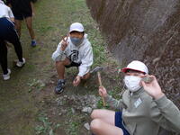 10月27日(木)に6年理科「土地のつくりと変化」の学習で、化石探しをしました。学区内にある地層から持ってきた岩石を観察し、金づちやシャベルを使い探しました。