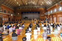 長南祭(合唱)を間近に控え、1年生から3年生までがそれぞれ小学生や下級生を観客に迎え、中間発表をおこないました。