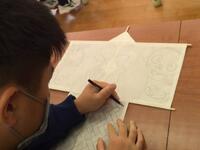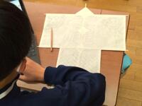 美術とのコラボで、先日作った袖凧の台紙に下書きをし、色をつけます。