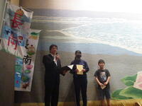 閉会式後、優勝した脇元選手を囲んで記念撮影