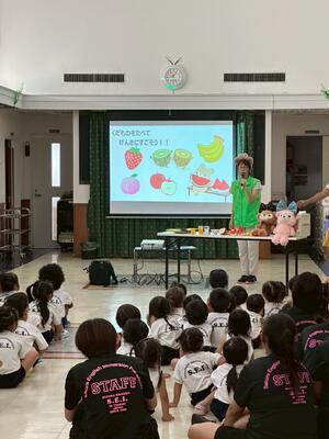 内容 保育園児、学童児童、教職員に向けて、栄養バランスよく食べること、果物の栄養についてパワーポイント、