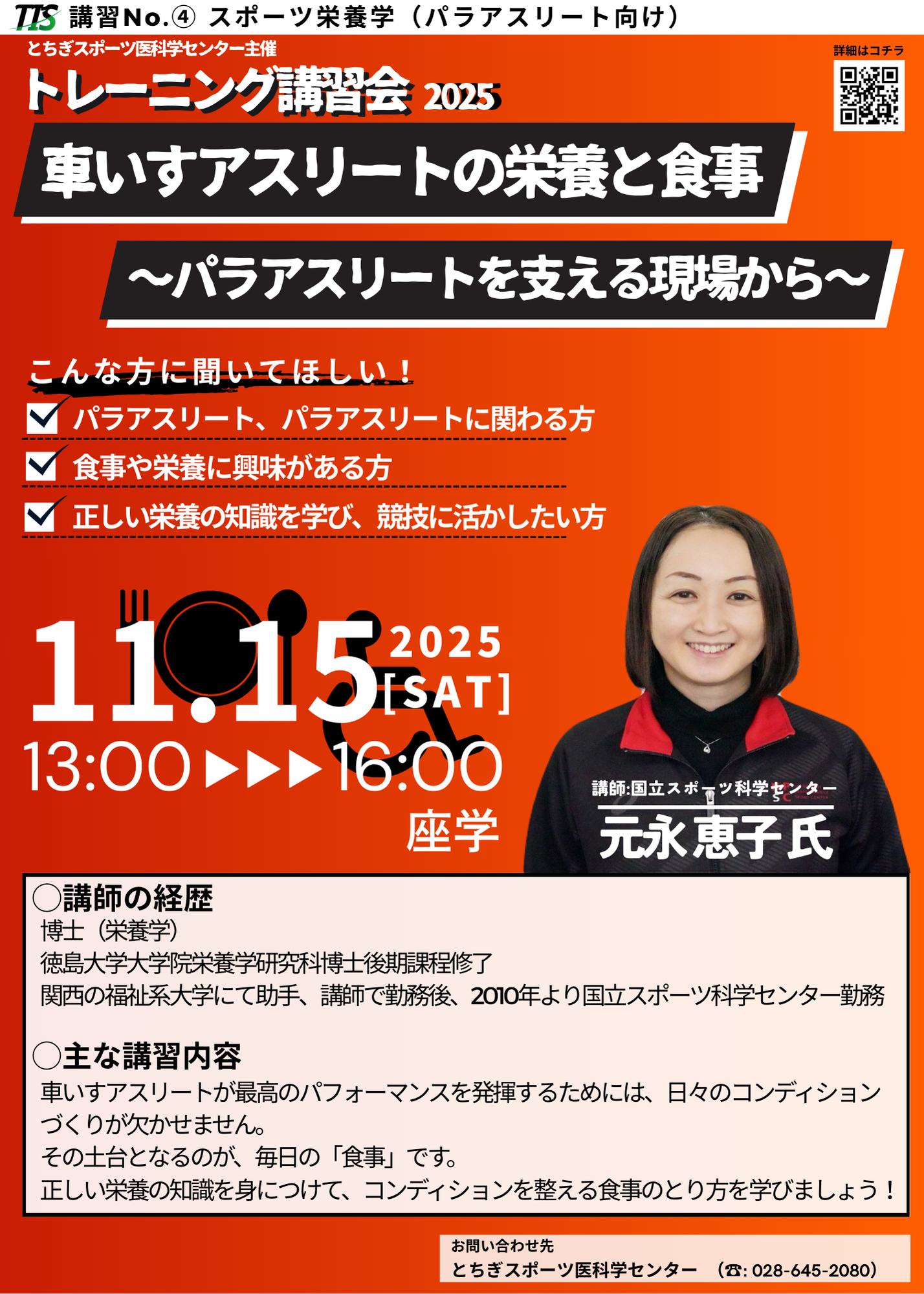 申込方法:①研修会名②参加希望日③所属④職種⑤氏名⑥参加メールアドレス⑦連絡先(電話番号)を 栃木県栄養士会事務局にご連絡ください(メール、電話、FAX可)