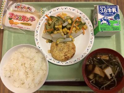 ※本日はホットドックの予定でしたが、台風対策のためパンからごはんへ変更しました。