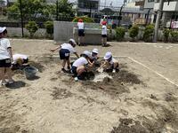 山を作ったり、穴を掘ったりして活動に友達と協力しながら取り組みました。