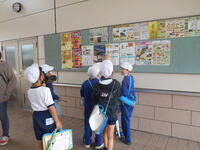 今日は、社会科の学習で学校の周りの探検に行っていきました。