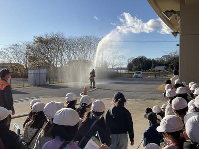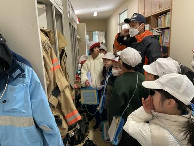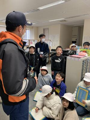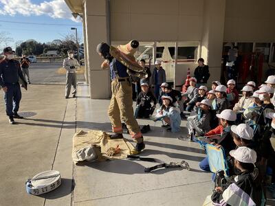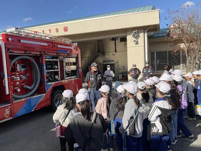 最後に消防士さんから「みんなと会うのは見学の時だけになるように、大人の言うことをよく聞こうね」という言葉をいただきました。子どもたちからの質問も出ていました。