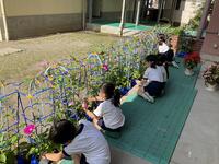 4月に種を植えたあさがおの花が咲き始めました。子どもたちは毎日一生懸命お世話をしています。また、まだ蕾も多く、これからの開花を楽しみに待っています。