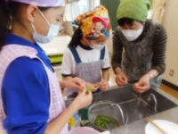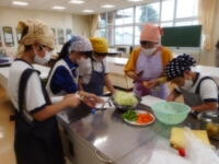 グループで協力しながら、安全に正しく調理をし、自分達で作った和風ソースをかけて、おいしくサラダをいただくことができました。