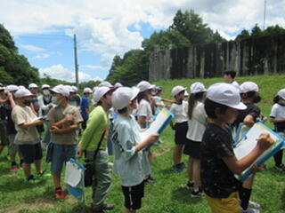 社会科見学として、真岡市にある亀の子山古墳を見学に行きました。看板の説明を読み、亀の子塚古墳についての情報を集めました。また、井頭公園にも行き、班のみんなでアスレチックを楽しみました。時間を見ながら計画的に活動できました。