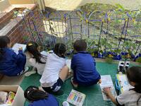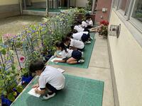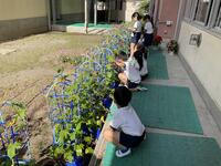4月に種を植えたあさがおの花が咲き始めました。子どもたちは毎日一生懸命お世話をしています。また、まだ蕾も多く、これからの開花を楽しみに待っています。