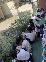 本校には「なかよし班」という縦割り班があります。毎日の清掃や児童集会などは、この班で1年間活動します。6月26日(月)の昼休みは、なかよし班の共遊の時間がありました。班対抗のドッジボールや鬼ごっこをみんなで楽しみました。