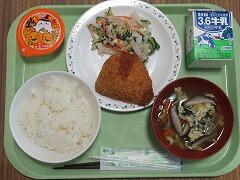 ごはん 南瓜フライ 大根サラダ 白菜スープ ハロウィンデザート 牛乳