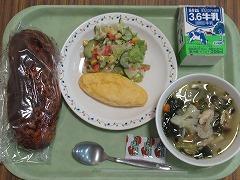 わかめごはん 唐揚げ 春雨サラダ コーンスープ いちごアイス 牛乳