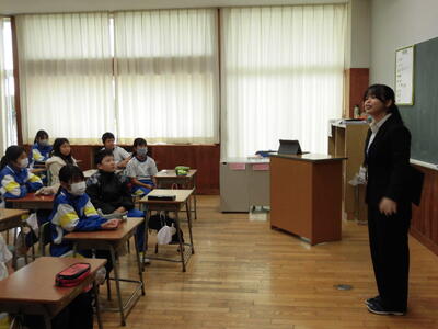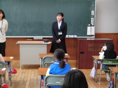 10月21日(火)、4名の教育実習生を迎えました。朝、オンラインで全校生に紹介した後、各クラスでも自己紹介しました。よろしくお願いします。