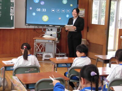 「人権教室」では、「白い魚とサメの子」の電子紙芝居と振り返りを行いました。「いじめ」ついてみんなで考えることができました。人権擁護委員のみなさん、ありがとうございました。