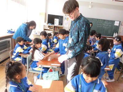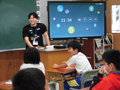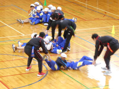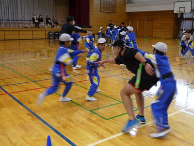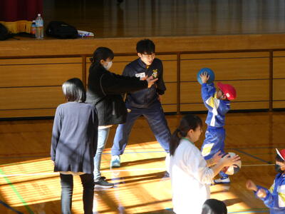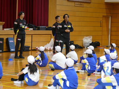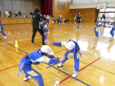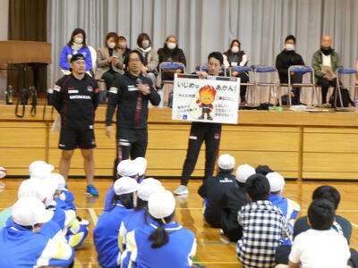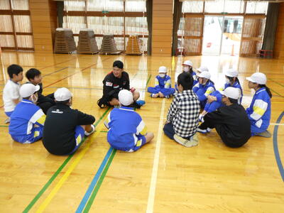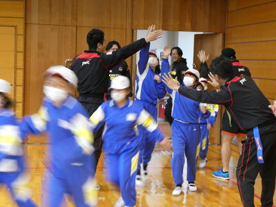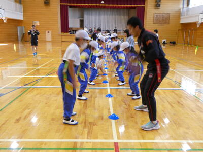 11月27日(木)、4・6年生は、Honda HEATの皆さんによる出前授業を行いました。それぞれ4チームに分かれて、一緒に体を動かしました。チームでどうやったら記録を縮め相手に勝つことができるか、作戦はどうするかなどをみんなで話し合いながら、楽しく活動することができました。授業終わりには、いじめ・暴力の防止についてのお話をいただきました。最後にナップザックをいただき、サインもしていただきました。Honda HEAT の皆さん、素晴らしい授業をありがとうございました。