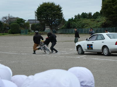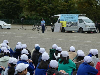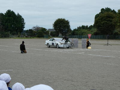 10月22日(水)、芳賀中学校において、スケアード・ストレイト方式による交通安全教室が行われ、5・6年生が参加しました。スタントマンが、目の前で交通事故を再現することで、交通事故の衝撃や恐怖を実感することができ、交通ルールの必要性について考えるよい機会になりました。