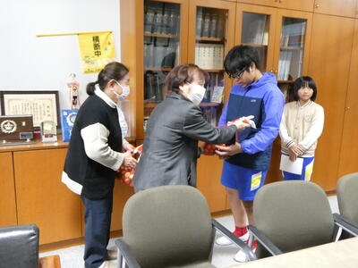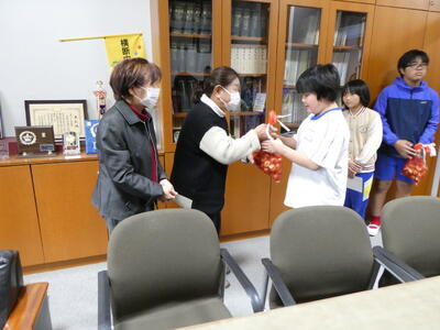 11月5日(水)、更生保護女性会の皆様が来校し、チューリップの球根を寄付していただきました。飼育栽培委員が受け取りました。大切に育てていきたいと思います。花が咲くのを楽しみにしています。