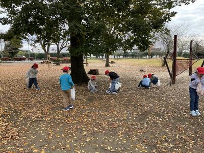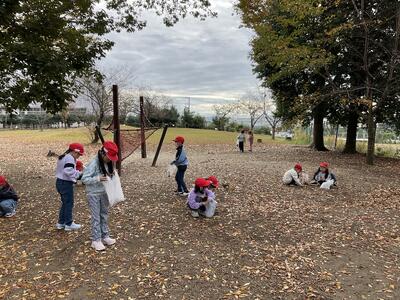 子どもたちは喜んで、落ち葉や木の実を拾っていました。