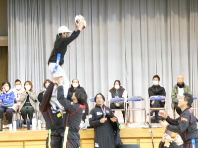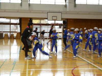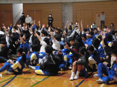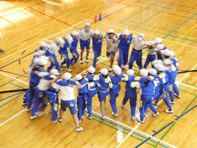 今日は、雨天のため体育館で全体練習を行いました。昨日の予行練習を振り返り、さらによくなるように一生懸命連数する姿が見られました。