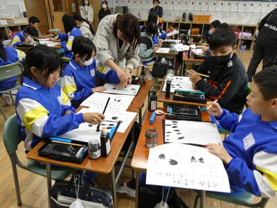 11月25日(火)、6年生が、はがまるふるさと学校で、華道や墨絵の体験をしました。講師の方から様々なことを教えてもらいばがら、作品を仕上げていました。貴重な体験になりました。講師のみなさん、ありがとうございました。