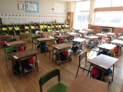 職員が110番通報した後、すぐに校内放送。それを聞いて、教室にいる児童は素早くドアを施錠し、バリケードをつくり、対応。警察官の到着を待ち、犯人を確保しました。みんな真剣な態度で訓練に臨むことができました。