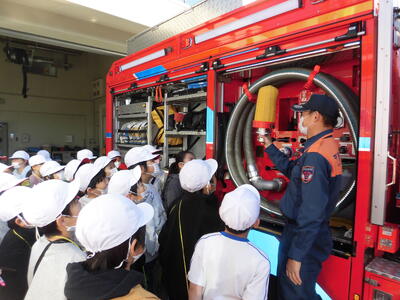 12月1日(月)、3年生の社会科見学で、真岡消防署芳賀分署に行きました。施設を見学したり説明を聞いたりして、火災が発生した場合、素早く消火する仕組みなどを学ぶことができました。消防署のみなさん、ありがとうございました。