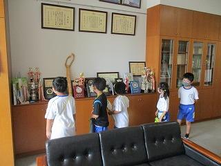 これは、毎年行われている、1,2年生の生活科おける学校探検です。2年生が1年生のお世話をして、学校の中を案内するものです。案内をしている2年生は、1年生に校長室についてしっかりと説明したり校長室への入り方、並び方や歩き方をアドバイスしたりと、この1年間でお兄さんお姉さんになった姿がよく分かりました。1年生もとても楽しそうでした。